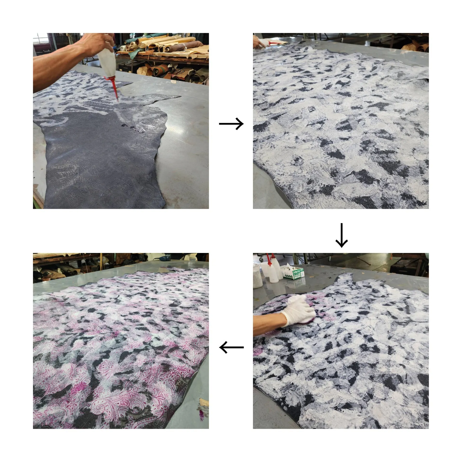 新しい革に生まれ変わらせる方法として、今回タンナーと協力し考案したのが、「W(ダブル)型押し」という手法です。300種類以上ある型のうち2種類を組み合わせたことが、その名の由来です。