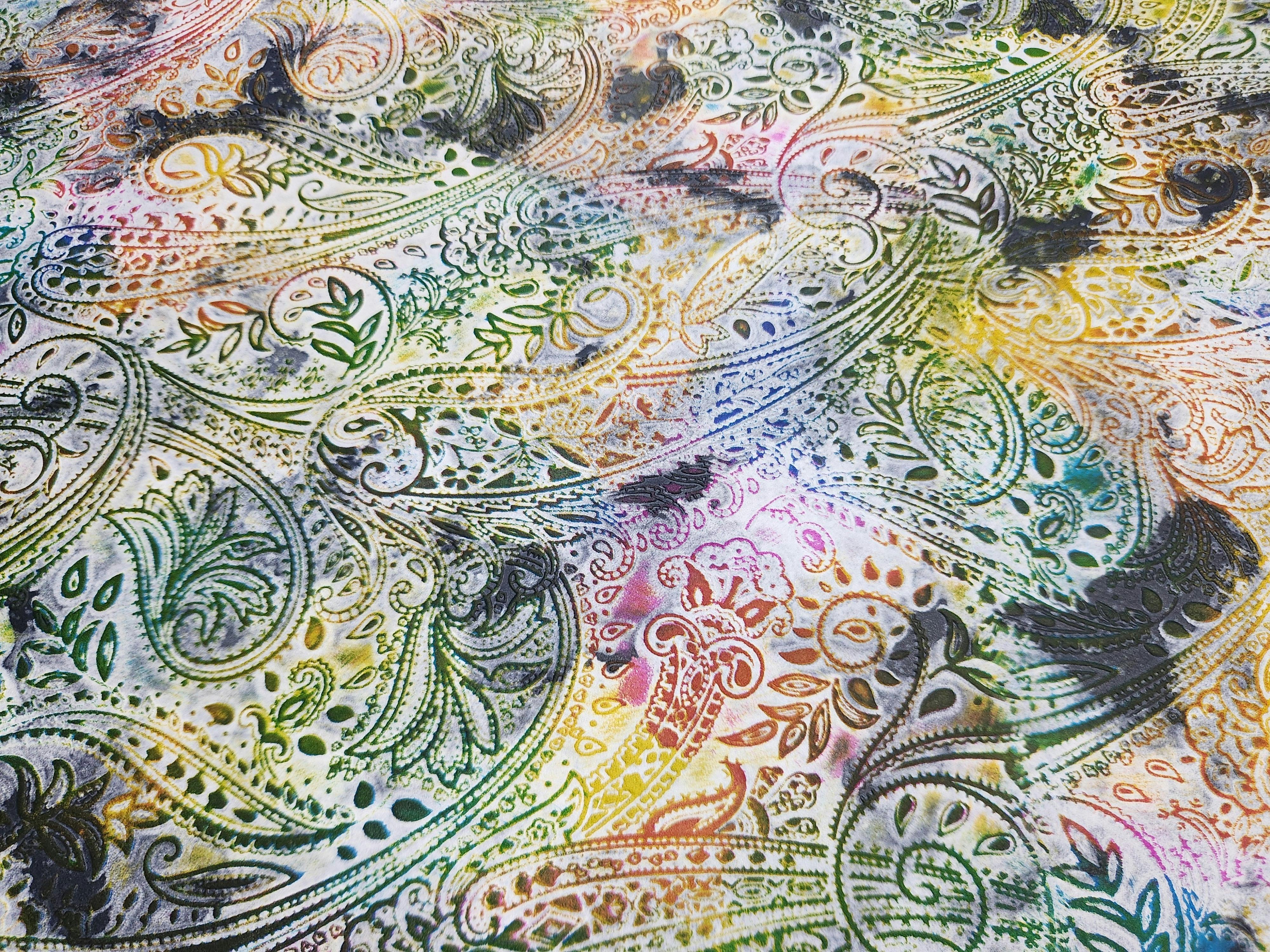 使用している色は全部で3色。これらが無造作に重なり合うことで、多彩な見え方となります。