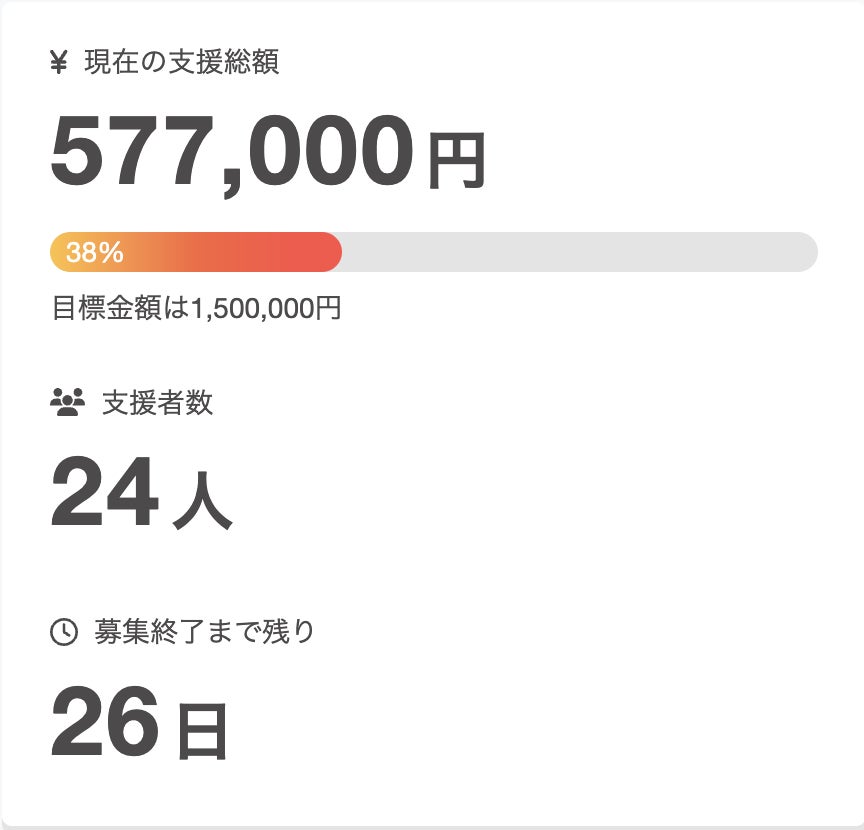 このプロジェクトは、2024/11/20に募集を開始し、 114人の支援により 1,982,500円の資金を集め、 2024/12/26に募集を終了しました