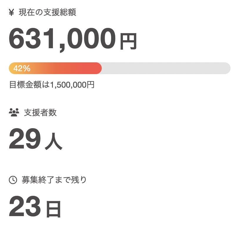42%達成しました!ご支援いただきましたみなさま、本当にありがとうございます!