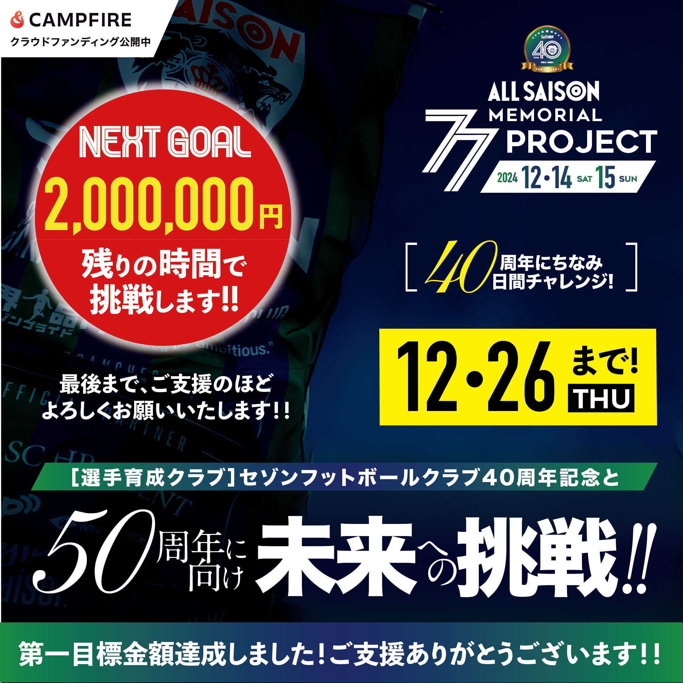 プロジェクトの目標金額を達成したので、ご報告させていただきます。