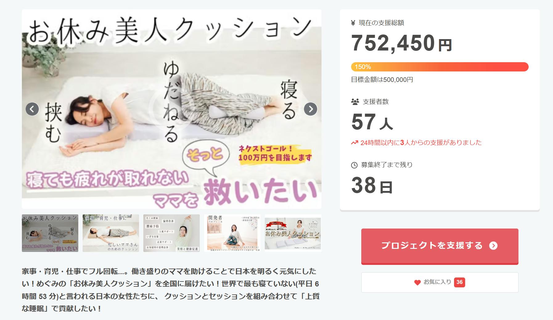 皆様のおかげで、開始1週間以内に150%の目標を達成することができました