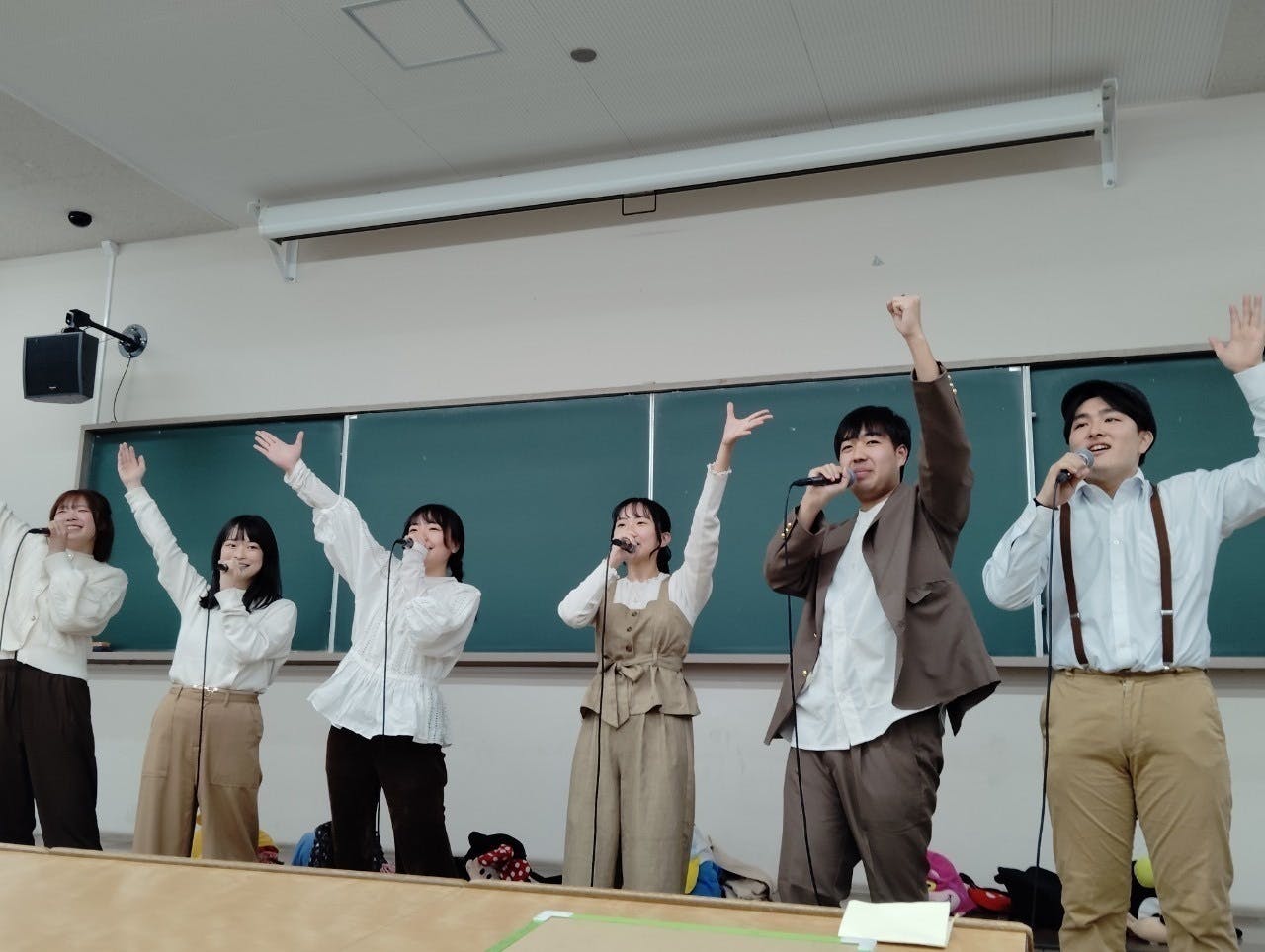 私たちは、心躍るショーパレ音楽を観客の皆様と一緒に楽しむことをコンセプトに、歌って踊る着ぐるみアカペラバンドとして、サークル内外で様々な活動に取り組んでいます。