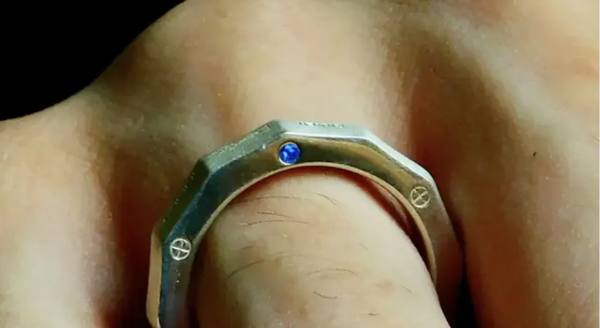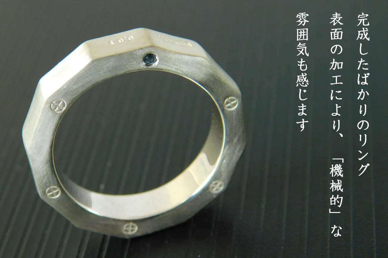 男性的な「バイクのパーツ、腕時計」からインスピレーションを受けデザインしたリングです
