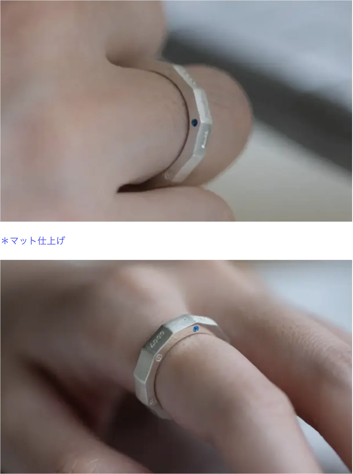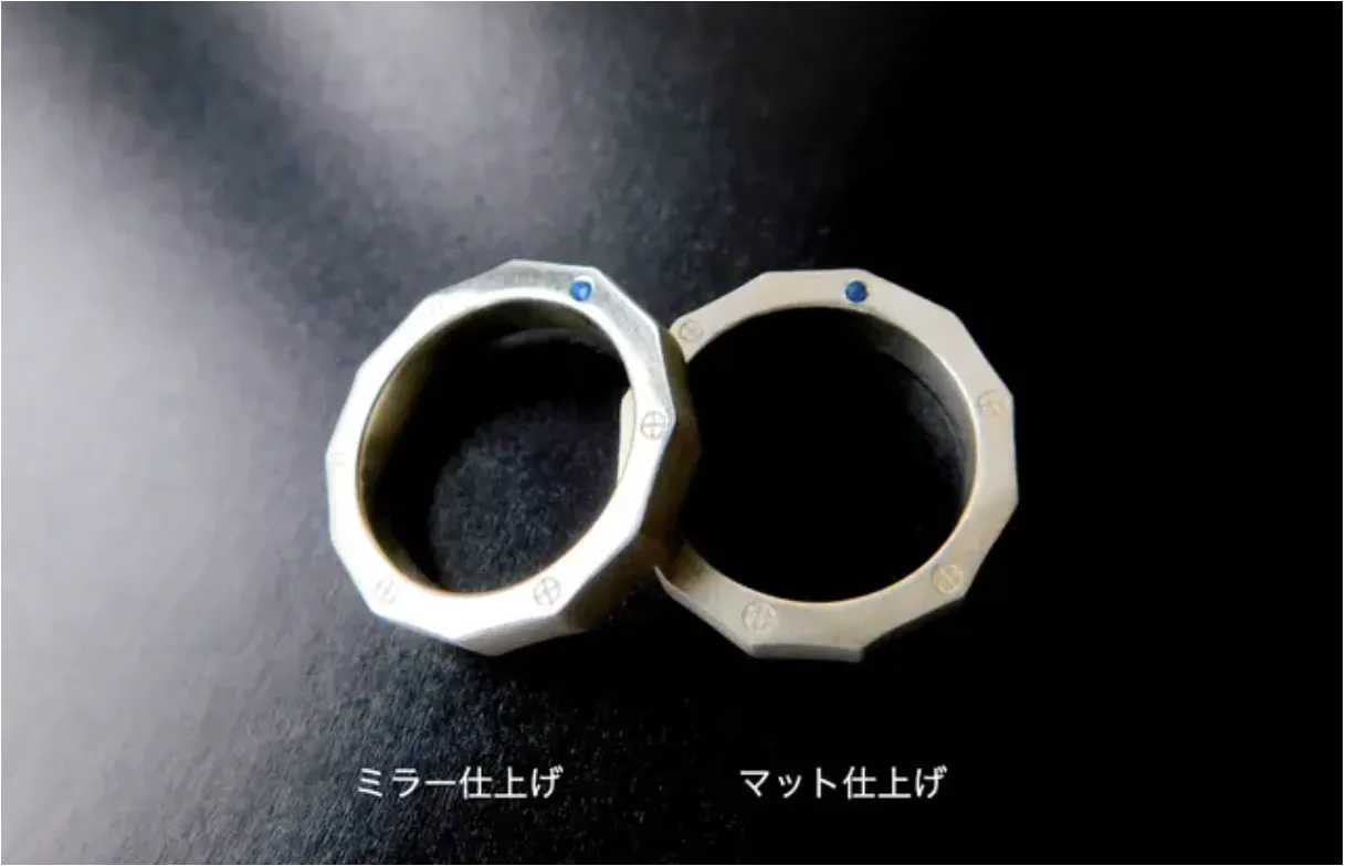 ミラー仕上げは表面はマット仕上げ、サイド(レアストーンが留まっている部分)がミラー仕上げ(鏡面)になっています