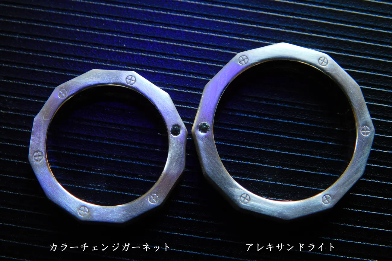 今回のリングに輝くのは「レアストーン」と呼ばれるダイヤモンドやルビー、サファイアなどのメジャーストーンではなく、地球上の1箇所でしか採れない「アウイナイト」や色が変化する希少なガーネットなどのレアストーン