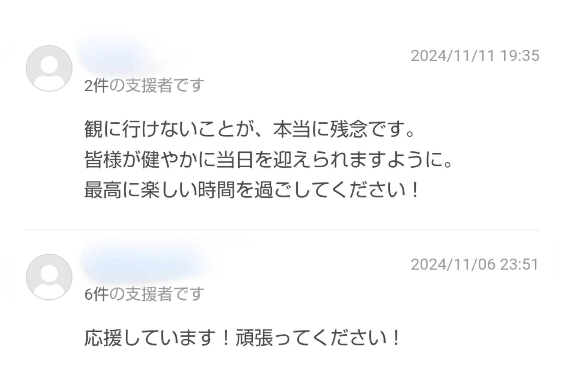 皆様の応援のお言葉が、本当に何よりも力になります。私たちが活動できるのも、皆様の応援のおかげです。いつもありがとうございます。