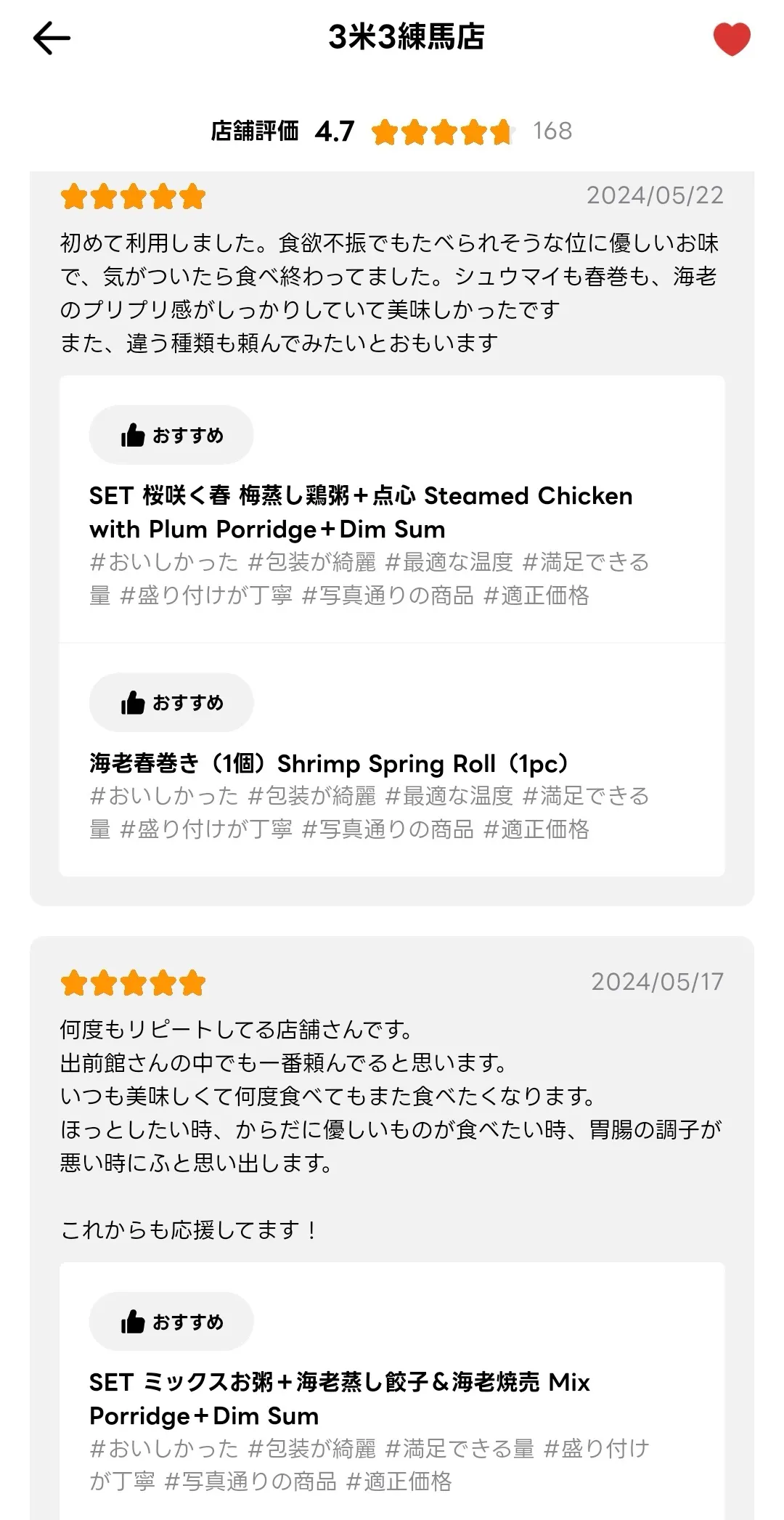 はじめまして。私たちは3米3練馬店という、中華粥(香港)と点心を提供する専門店です。