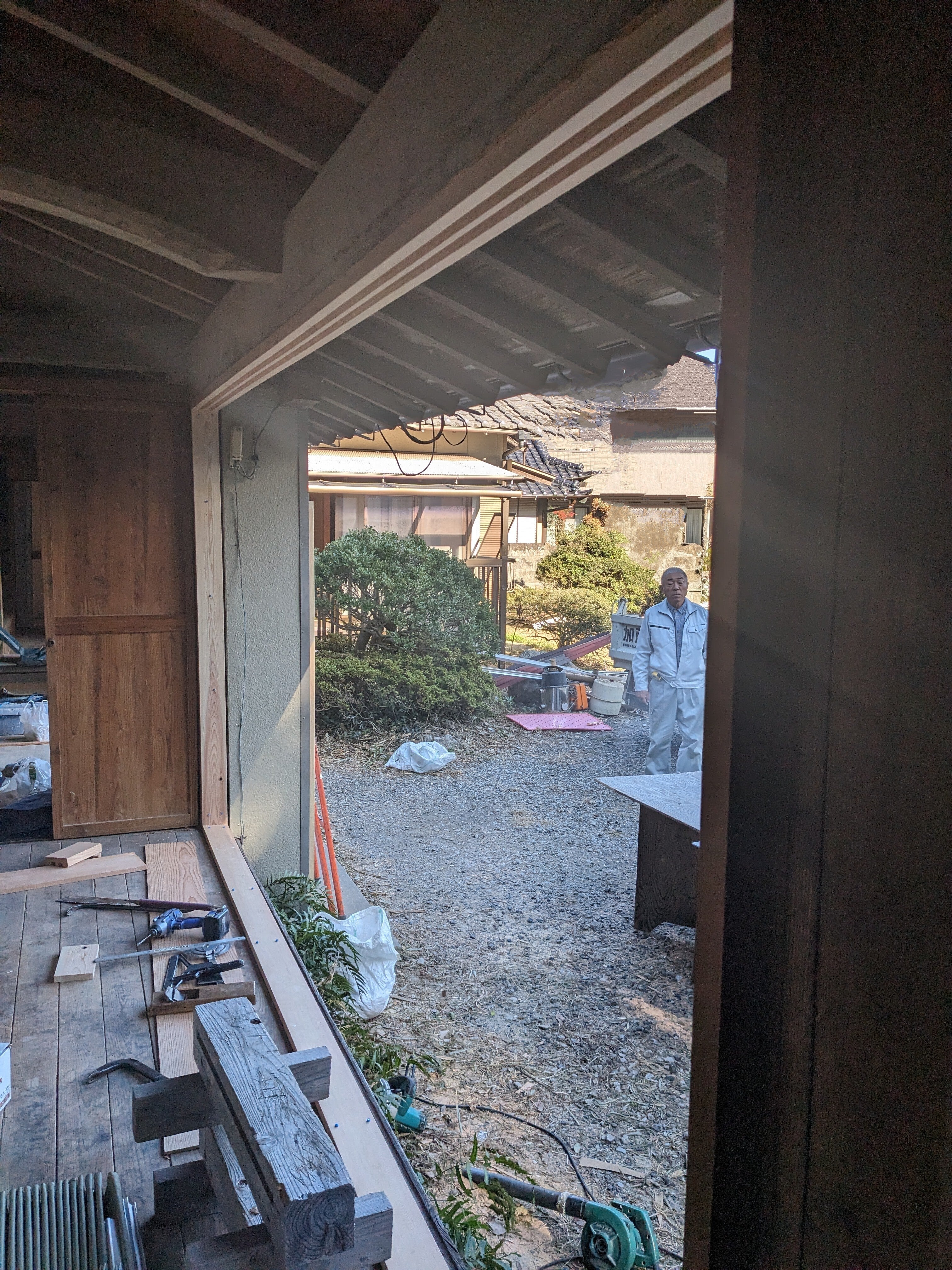 2024/12/15 08:04お早う御座います。しんしんと冷え込む南房総市の朝です。今日は日曜日で職人さん方々もおやすみ。昨日、既存のサッシ枠外してグズグズだった木枠に手を入れてもらい、新たに入れる渋い木枠引戸の為の鴨居施工が完成。寒空の下、職人さん達が、コンマ何mmの擦り合わせを手際よく仕上げていく様に外来工法にはない匠の技に見入っちゃいました。来週には母屋の施工もひとまずは納めかな。てはまた!ciao a tutti! もっと見る