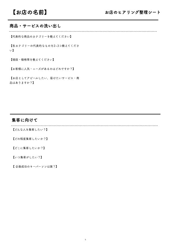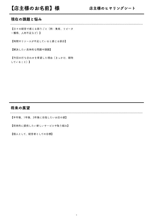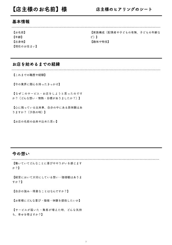 詳しい内容は下記の「店主様のヒアリングシート」をもとに行います。