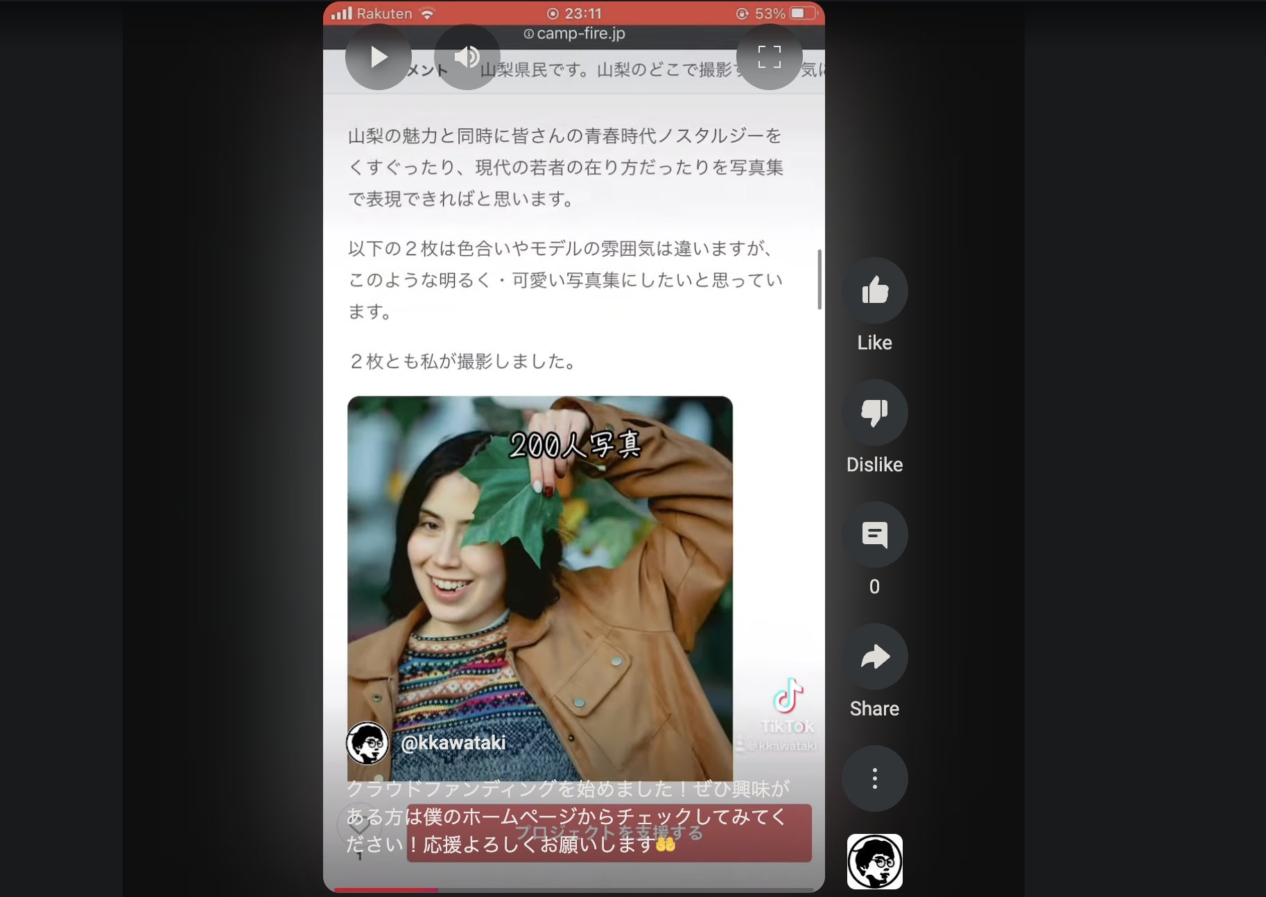 しかし、人から感謝される喜びを忘れることは出来ず、これからも写真撮影を続けていきたいと思い、今回クラウドファンディングで皆さんにお力を借りれないかとお願いに参りました。