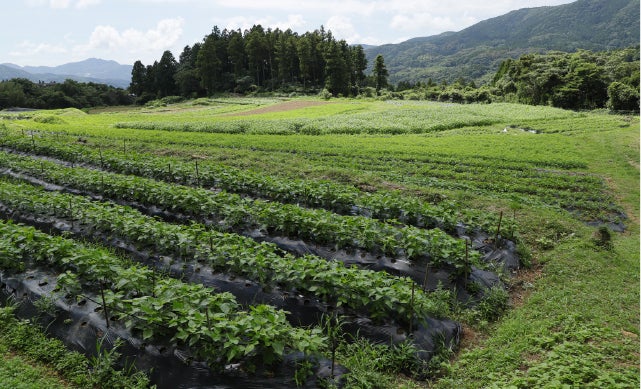 (宮田町農園として、野菜作りのプロとも言える90歳近くの叔父や叔母をはじめ農園スタッフ6人の方々に健康や自然をテーマで美味しい野菜を畑で管理して、それらを使用したり、無人販売所で販売したりしています)