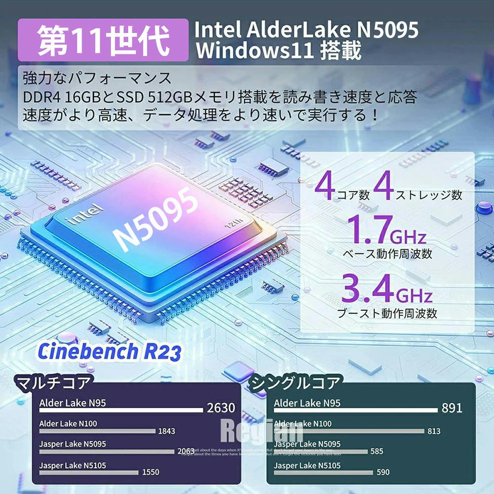 【強力でN5095プロセッサー】高性能CPUインテル celeron N5095-より強力で低消費電力のプロセッサーを搭載しています、標準周波数2.0 GHz 、最大周波数2.90 GHz搭載で非常にサクサク操作できます。