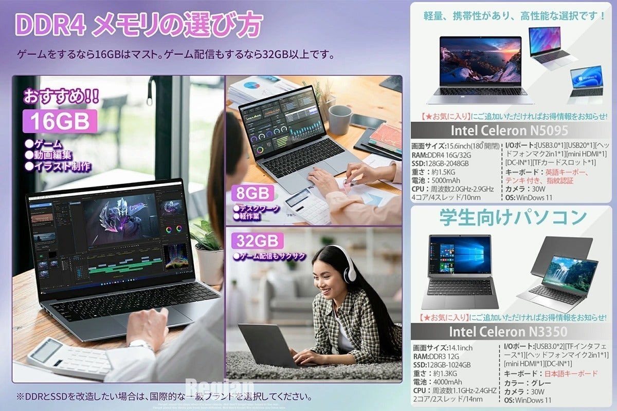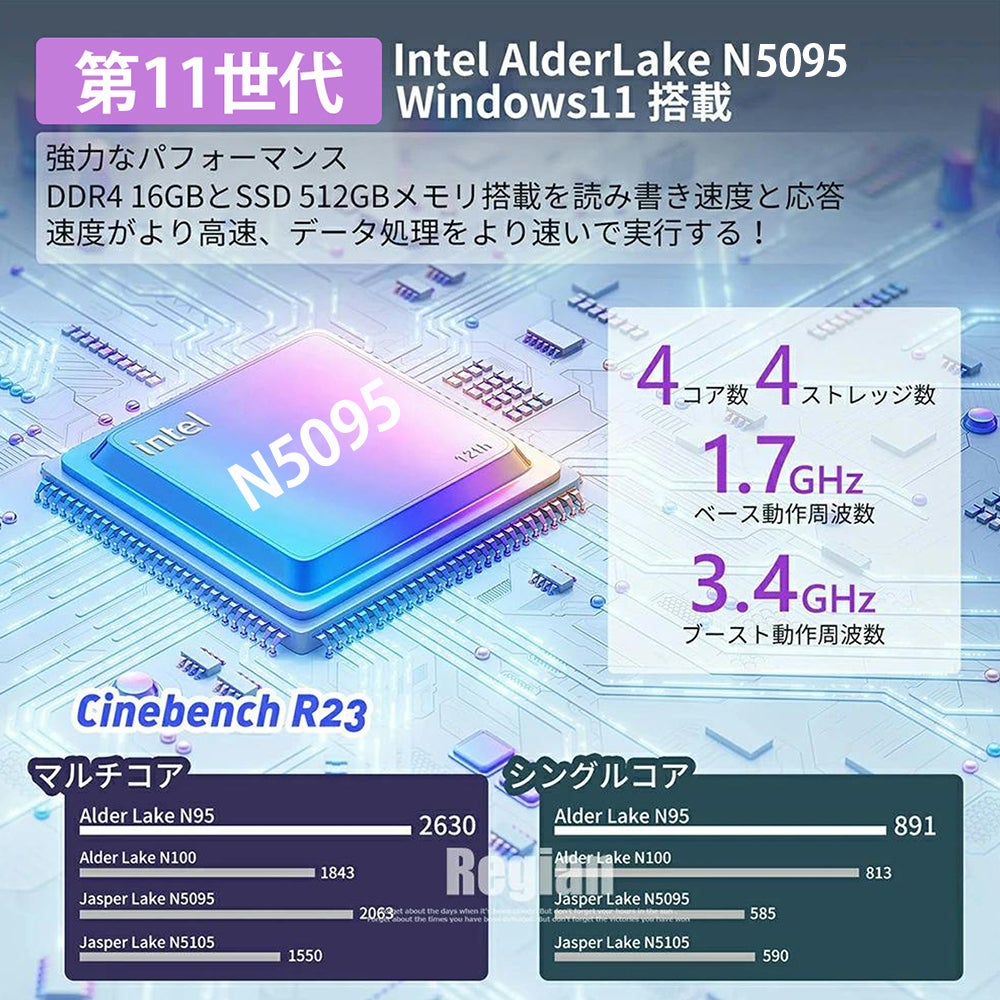 【CPU】 16GBメモリーと高速かつ静音の第11世代インテル Celeron N5095(4コア)