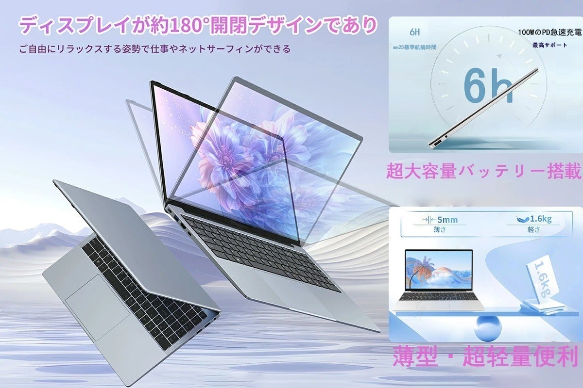 【超大容量バッテリー搭載】ノートパソコンは大容量バッテリーを内蔵、3-5時間連続使用することができます。