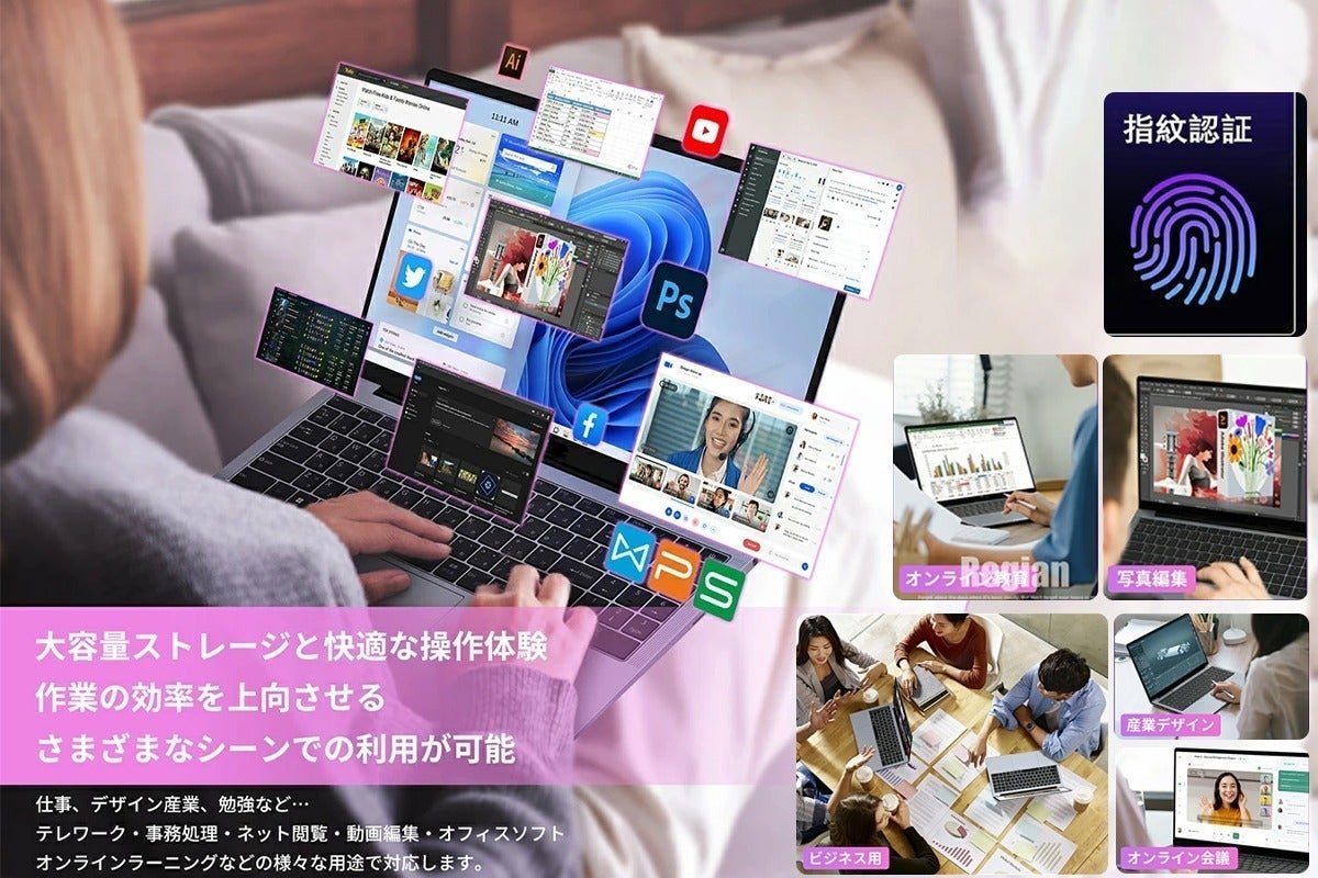 【画面サイズ】14.1インチlaptop FHD(1366*768),180°開け,視野角が広くて、眼も疲れにくくなります。