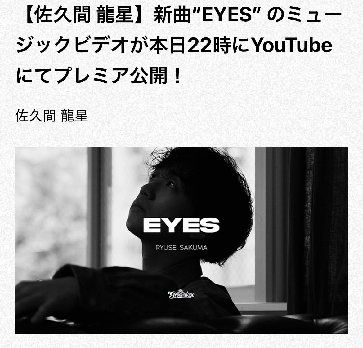 12月11日にリリースされたシンガーソングライター佐久間 龍星 (読み=サクマリュウセイ) のファーストアルバム「COMPASS」より韻シストプロデュースの楽曲 ”EYES” のミュージックビデオが本日22時にプレミア公開される。