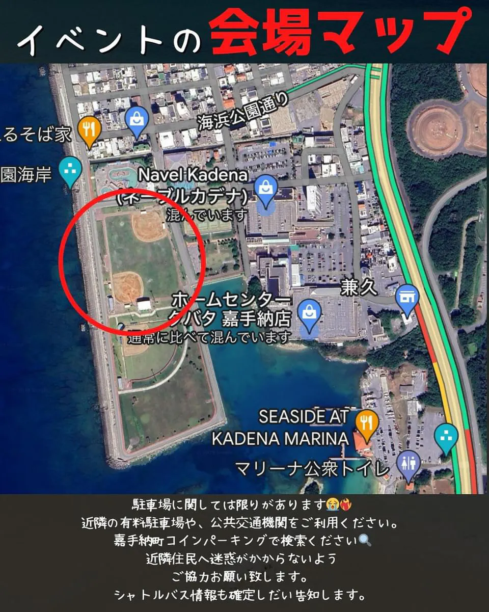 ✔開催場所:沖縄県嘉手納町兼久海浜公園(ネーブル嘉手納裏の野球場)