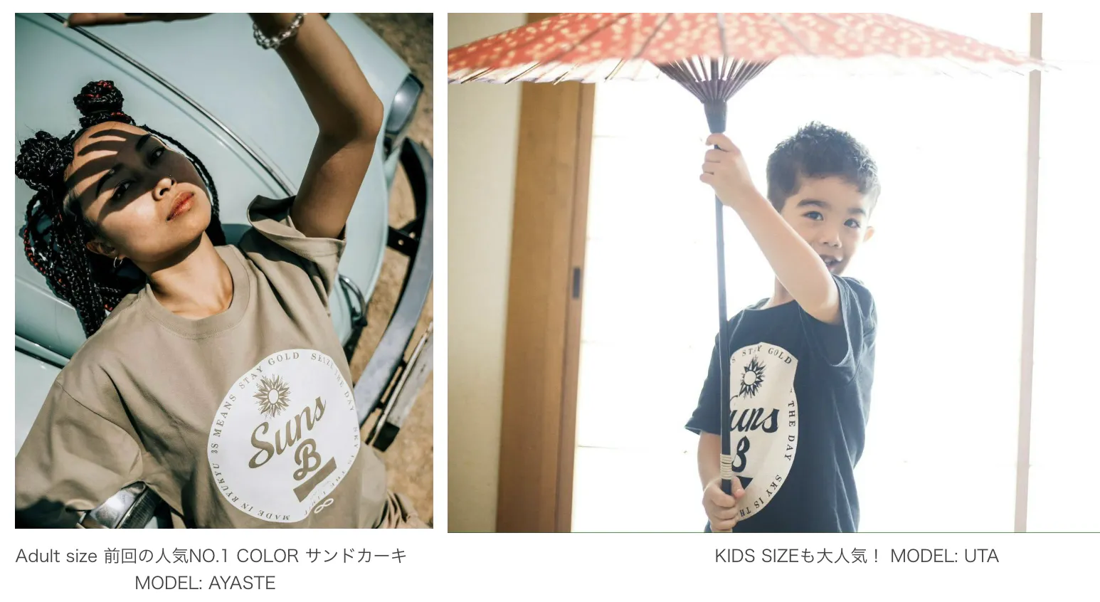 ①前回のクラファンで人気NO.1「Suns B Blank Original Circle Logo」ブランドを代表するロゴです。親子でリンクコーデも楽しめます!