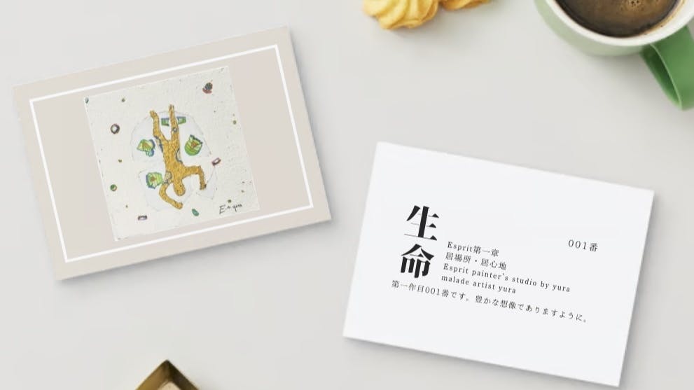 実際リターンに考えてる、第一章の「生命」~第十章までの絵画と同時にグッズやサイン、ロゴや梱包のこと。直筆お手紙、メッセージなど考えています。