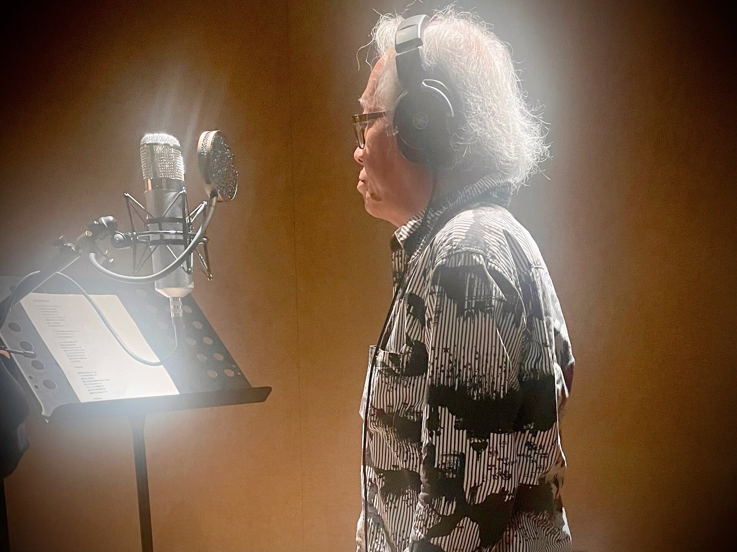 僕が上のパートを歌って、松藤さんが下のパートを歌って、一緒にコーラスを重ねて「終わったな」と思ったら、それを聴きながら、松藤さんが手を振り始めて、何しているのかと思ったら、西本さんが「入れる?」って言ったら、松藤さんが「うん。入れようか」って言って…