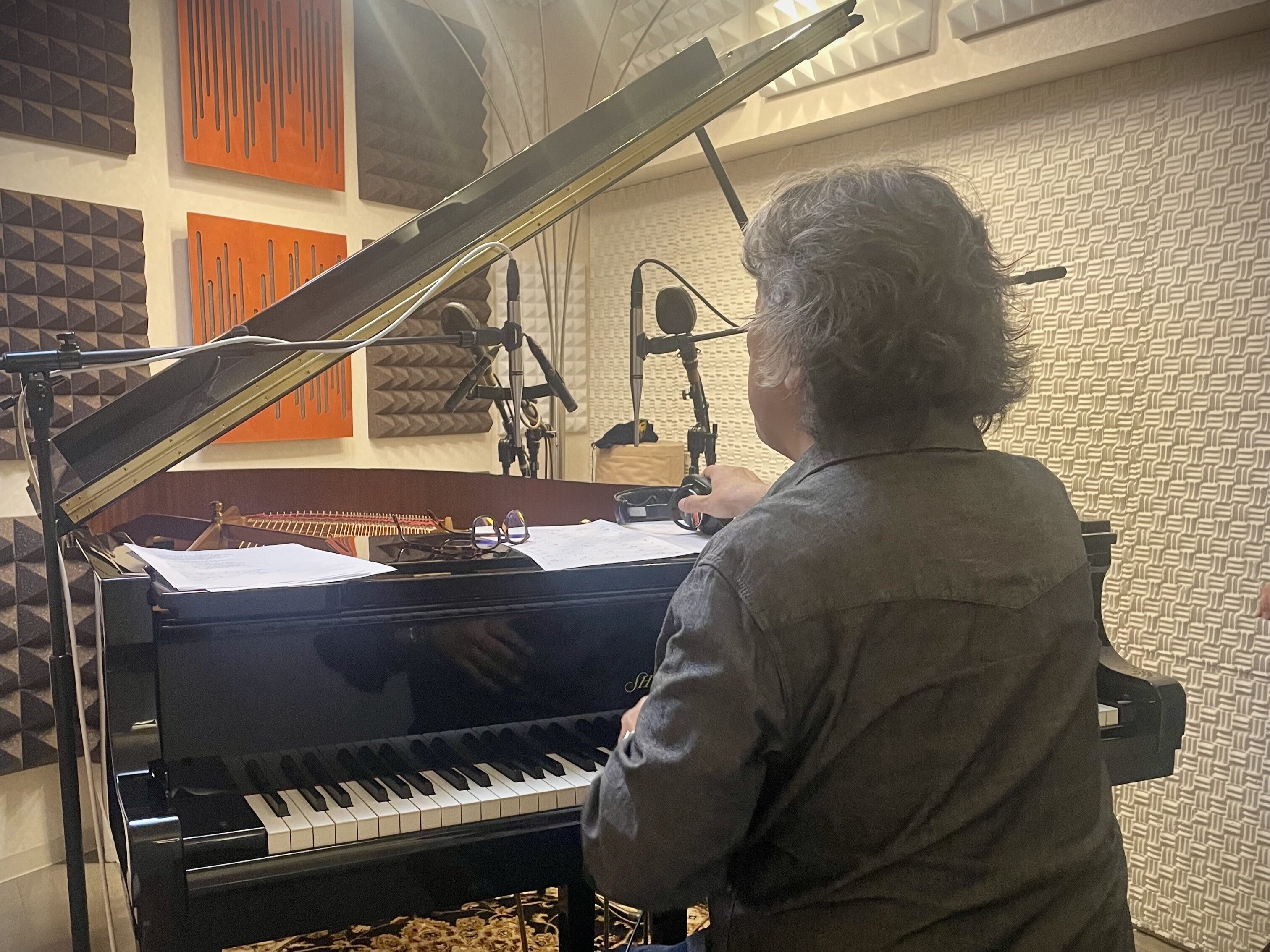 しばらく経って、今度はピアノの西本さんの日があって、ダビングのピアノを演奏で被せる作業で、多分3回くらいかな…西本さんが弾いて、どれも素晴らしいテイクだったんだけど、それは西本さんが自分で判断して「これでOKにします」って言って、それが出来たところに松藤さんが登場して…
