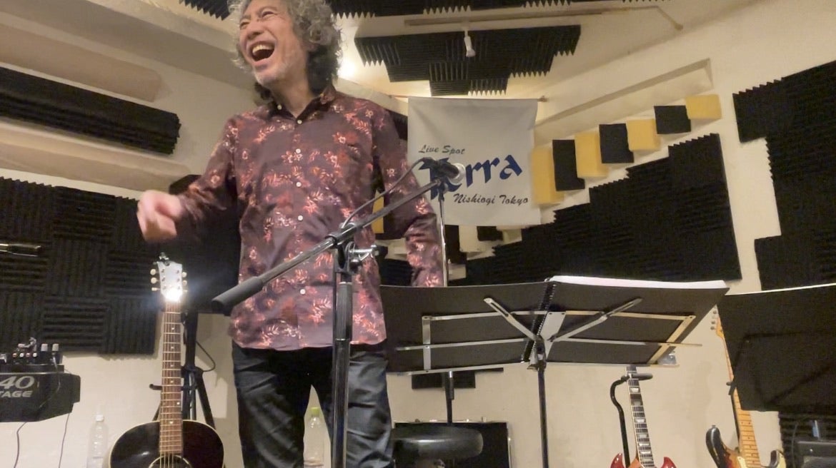 ※ ここで本日のスペシャルゲストの柿島伸次さん(ハープ)の登場です。もちろん歌も歌われていますが、西本さんからハープの演奏が絶品だということで呼び寄せられました。