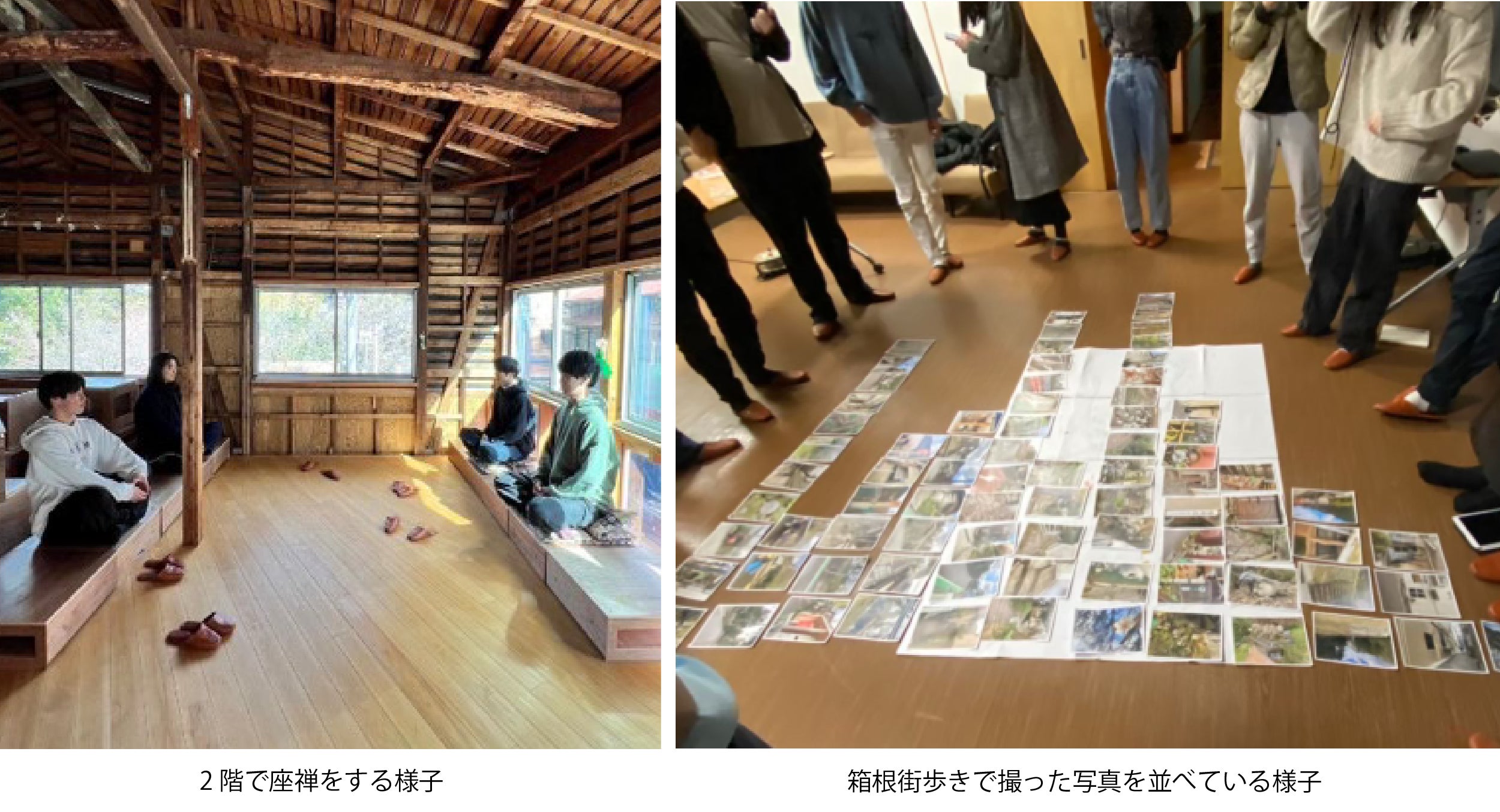 2階に簡易的なギャラリー、上映、ゼミなどを設置してみたり、朝6時から坐禅にも挑戦したり、箱根の街歩きをしたり、石巻や都内に事例調査に行ったりしました。8つの機能について調べて理解は深まりましたが、「機能の共存」という部分が疎かになっていることに気づきました。