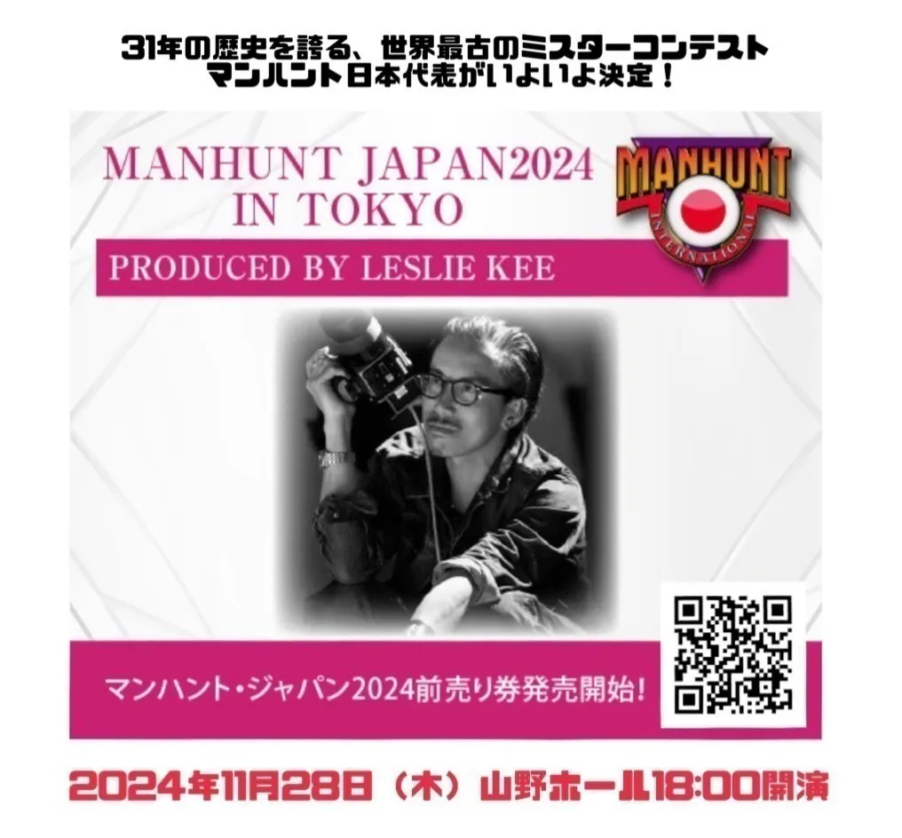 ○11月28日 マンハント・ジャパン2024 会場:山野ホール 開場:17:00 開演:18:00 終演 20:00
