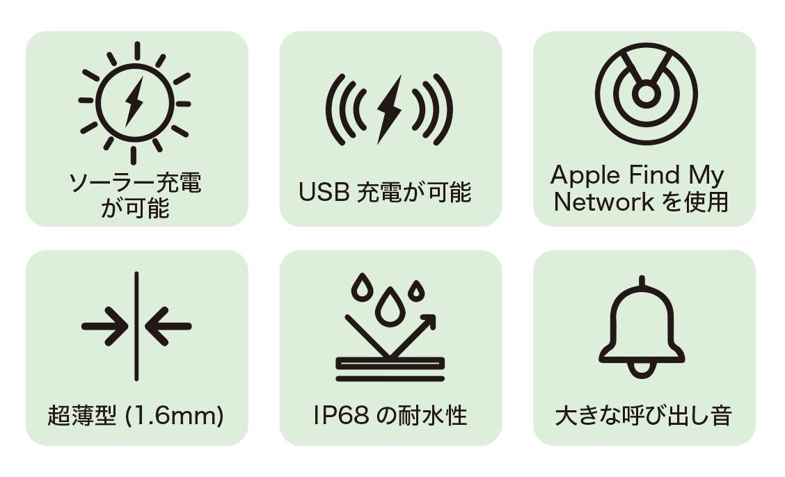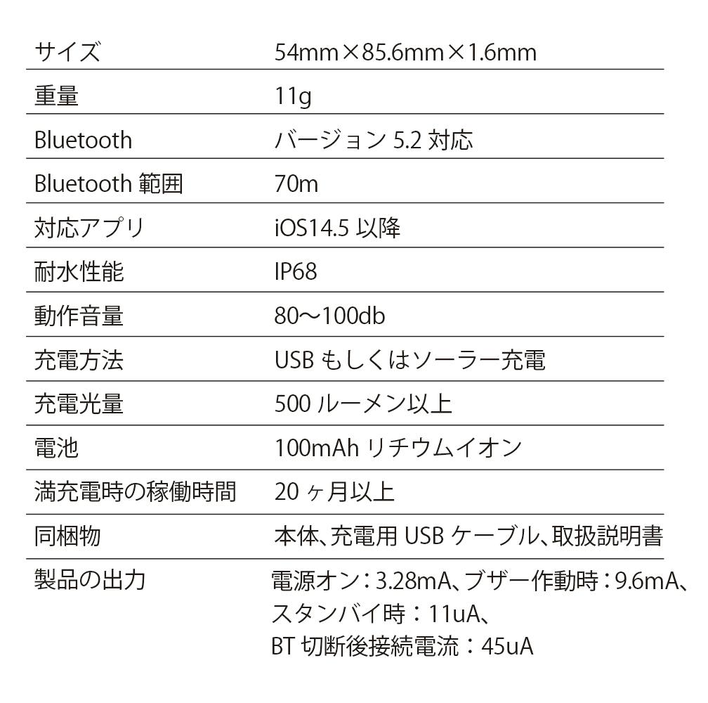 位置情報とBluetoothを利用して、持ち物から一定の距離をすぎて離れると、登録したデバイスに音やバナーで通知が来ます。Bluetooth5.1に対応。