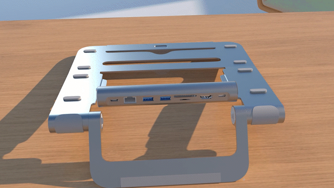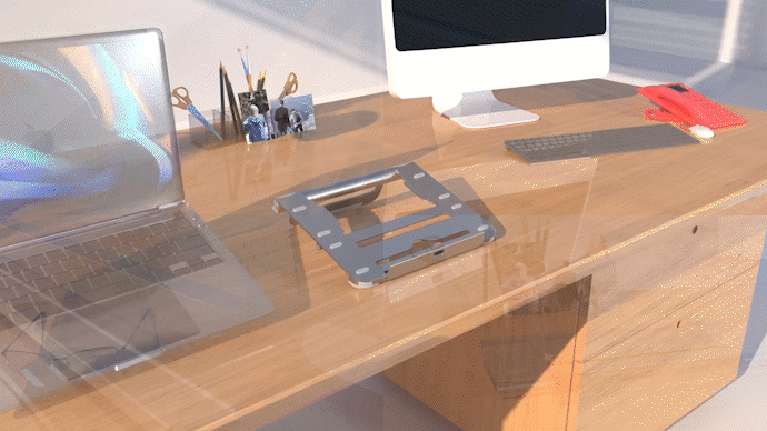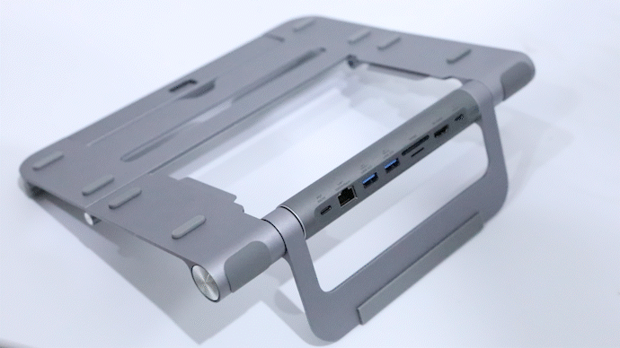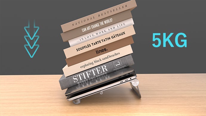 アルミ製だからこそ、小型軽量ながらの丈夫さを実現!最大5KGの耐荷重で、厚みのあるノートPCも無理なくセットできます。