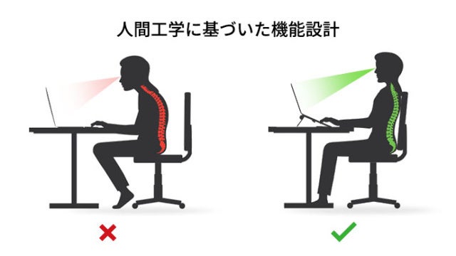 画面を見やすい高度で正しい姿勢を保ち、作業効率のより一層の向上をサポート!