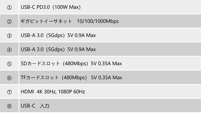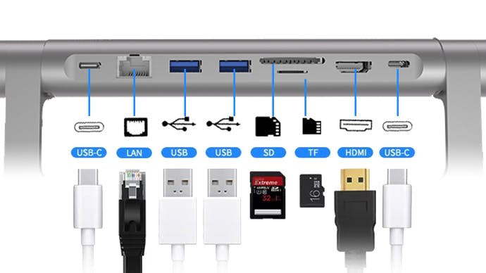1つのUSB-C端子から8つの端子に拡張!ごちゃごちゃしがちなデスク周りもスマートに一括に納め、作業効率を大幅に改善!