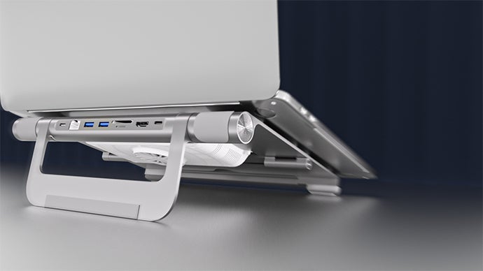 COLHUB(コルハブ)は、ドッキングステーションとクーラーが一体化した全能のワークスタンドです。8つの端子でパソコンを機能拡張すると同時に、CPUを冷却し、より良いパフォーマンスを発揮させます。夏の業務効率化アイテムはこれに決定!