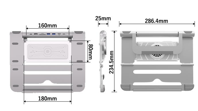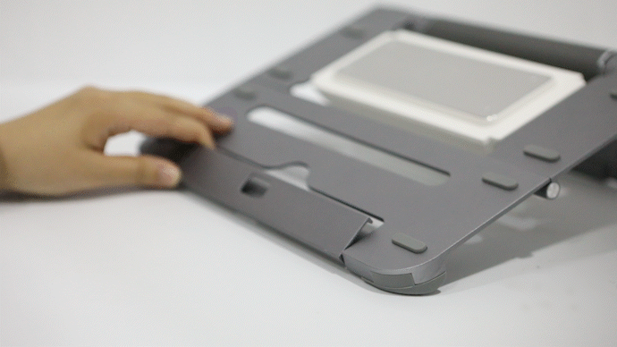アルミ製だからこそ、小型軽量ながらの丈夫さを実現!最大5KGの耐荷重で、厚みのあるノートPCも無理なくセットできます。