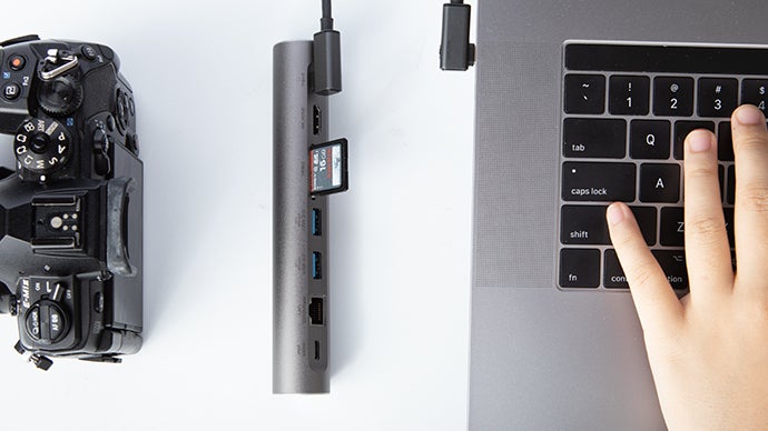 1つのUSB-C端子から8つの端子に拡張!ごちゃごちゃしがちなデスク周りもスマートに一括に納め、作業効率を大幅に改善!