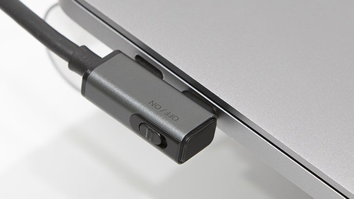 付属ケーブルにワンタッチで接続可能なスイッチ付き、本体とデバイスとの接続をより便利にします。スイッチONしたら一瞬で起動!