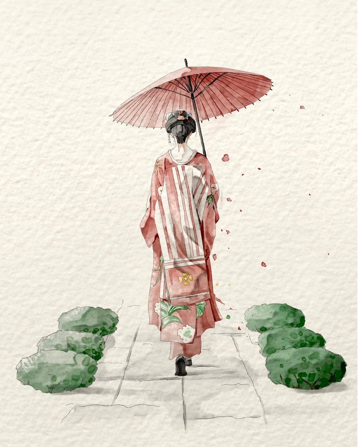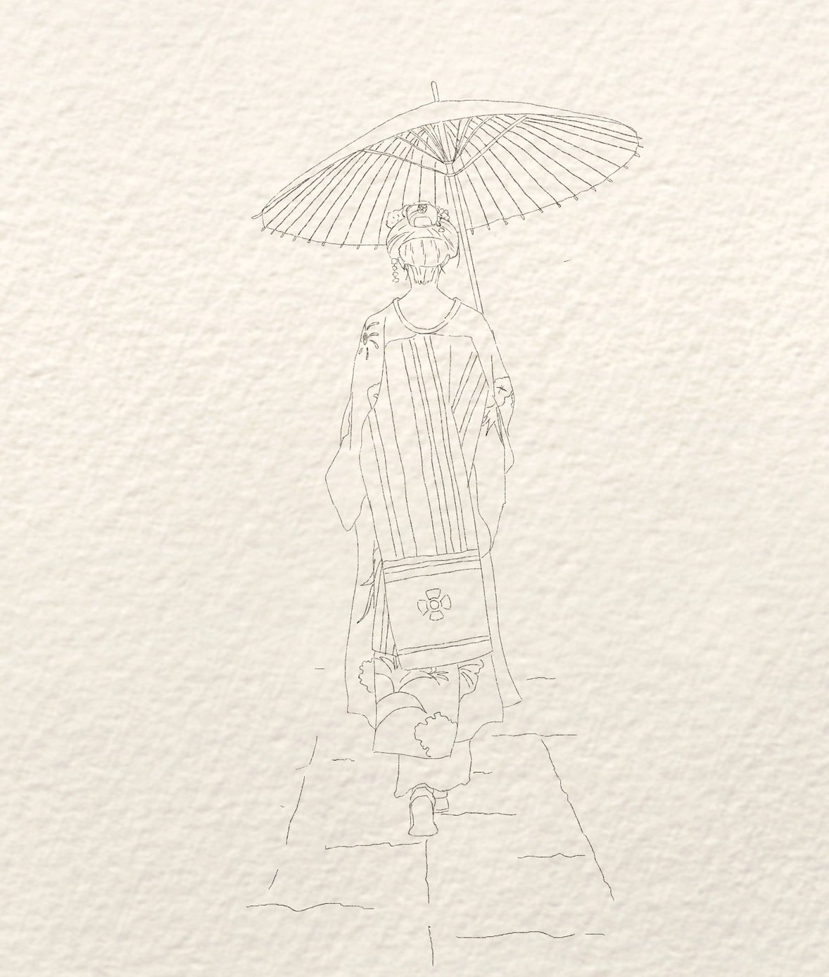 舞姫の奥ゆかしさを表すために、後ろ姿で描きました。水彩の渋さを感じていただけたら嬉しいです。
