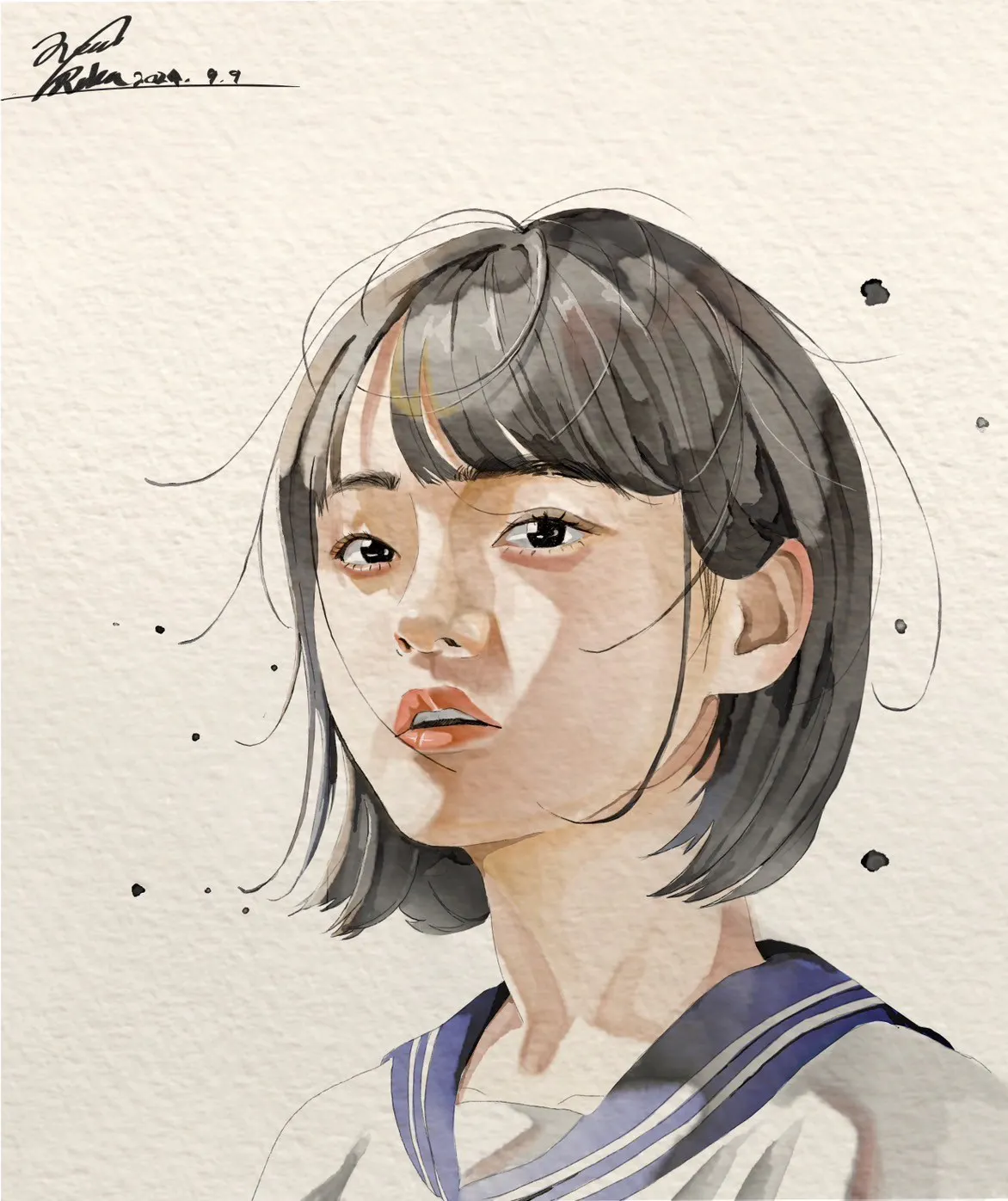 儚い雰囲気を出すために風を感じる髪の毛の動きと影の透明感を出すところをこだわっています。