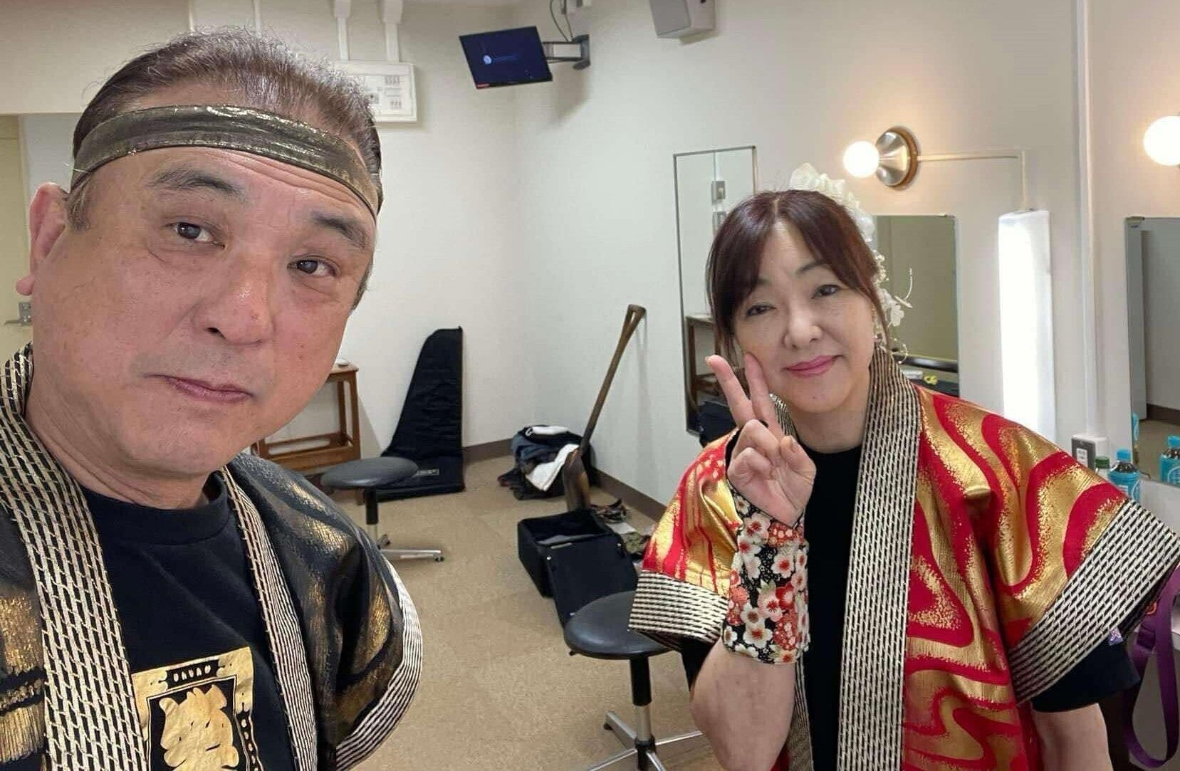 妻(鐵響子)と北海道での演奏の合間に楽屋で