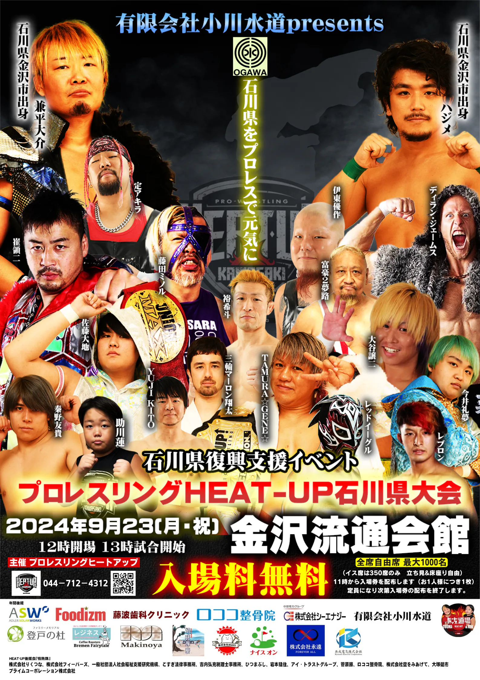 2024年9月23日に「石川県復興支援イベントプロレスリングHEAT-UP石川県大会」を企画し開催。