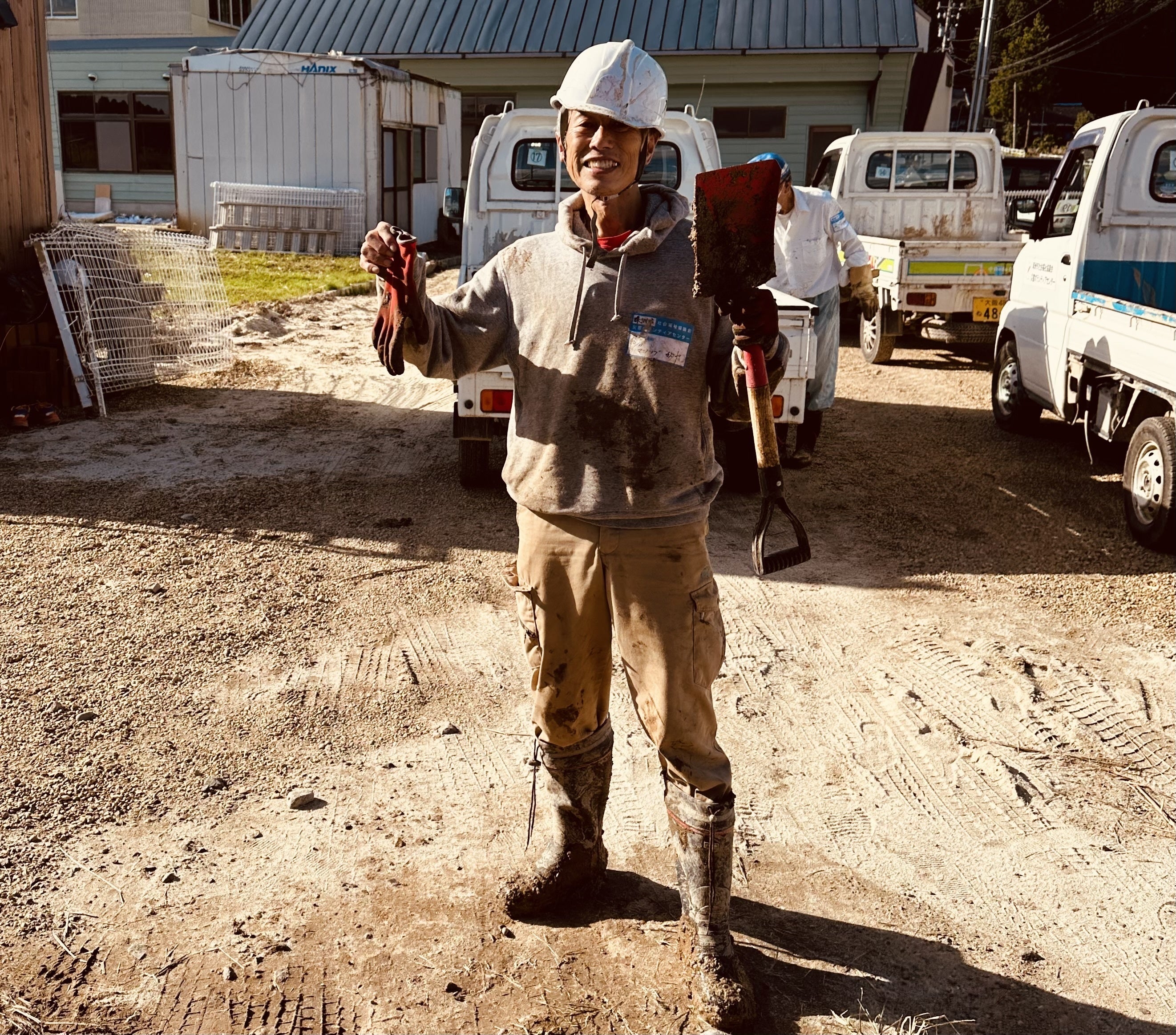 車中泊しながらのボランティア活動で、主に被災されたご自宅の床下ヘドロ出しなどを行っています。