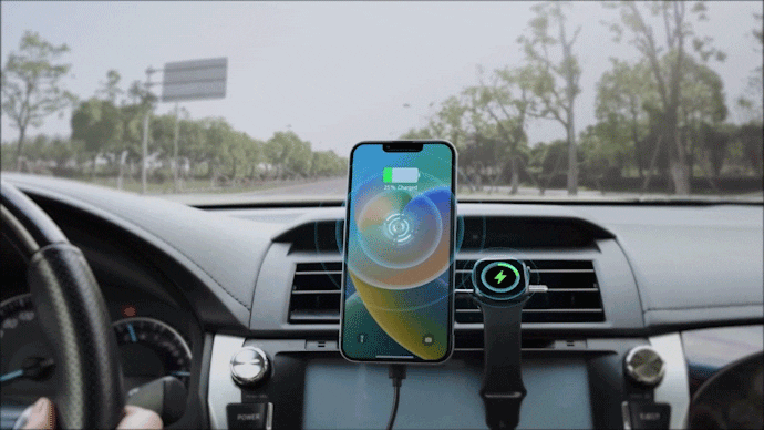 置く瞬間で吸着され、1秒で充電開始、スマホを固定するなどの手間から解放!