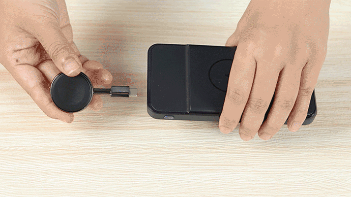 そしてウォッチの充電パッドは、まさか超便利な取り外し式!鍵のようなサイズ感でどこでも持ち運べ、Apple Watchの充電をより自由に!