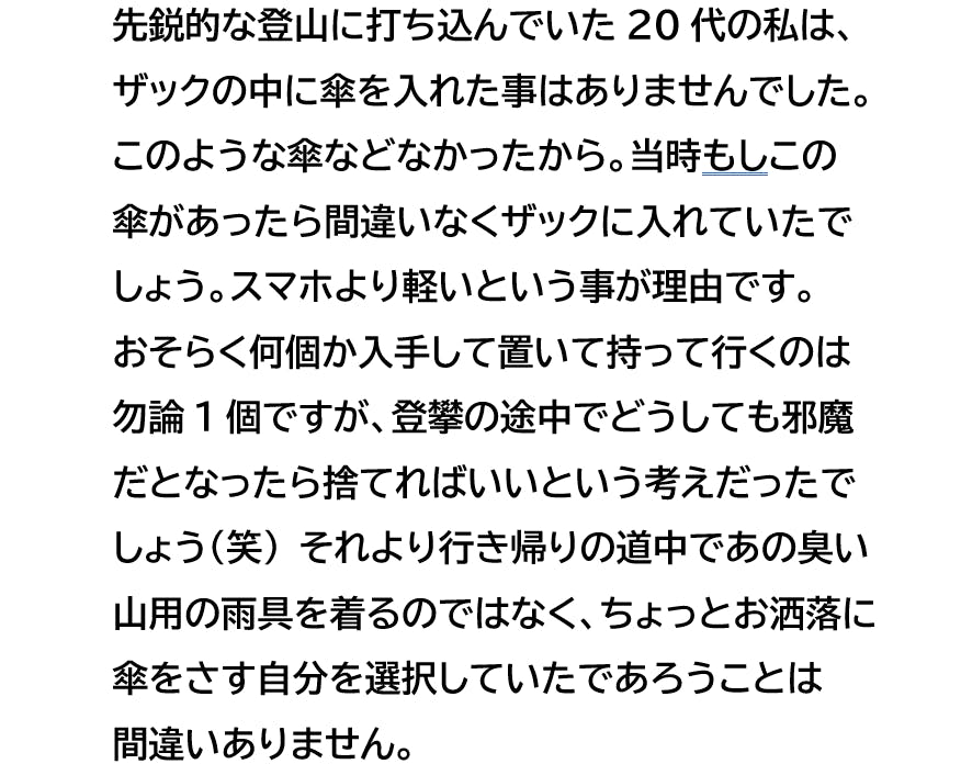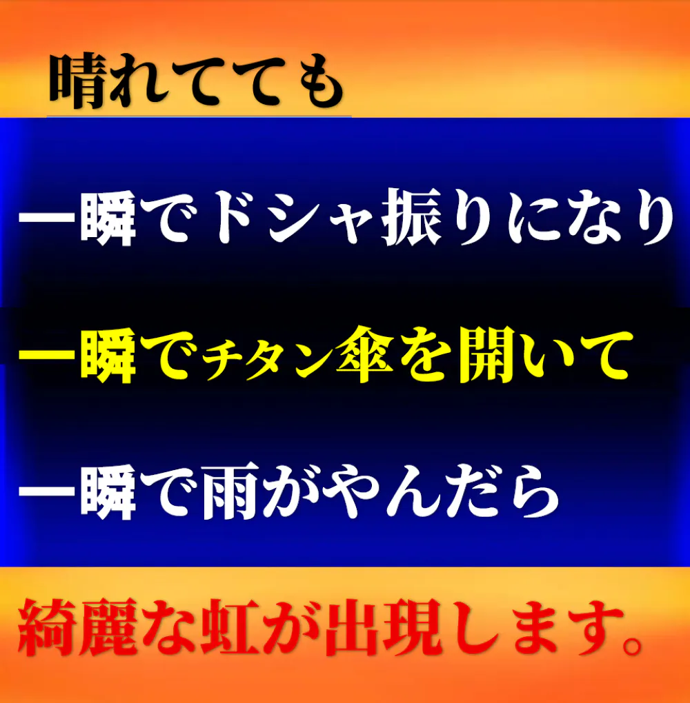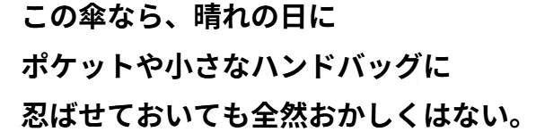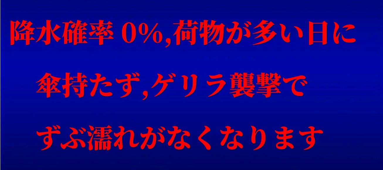 2025/07/23 21:10その「ずぶ濡れ」、本当に必要ですか?「同じ雨」でも、印象はまるで変わる。商談、プレゼン、初対面の人との出会い…これから大切な人と会う時、あなたはどんな姿で現れたいですか?頭からずぶ濡れで、まるでプール帰り。それとも、上半身はスマートに、手足に少し水滴がついた程度?一度濡れてしまった髪は、そう簡単には乾きません。想像してみてください。小雨の中、傘をささずに帽子をかぶる男性の姿を。彼らが守りたいのは、まさに**「顔と髪の印象」**なのです。あなたの第一印象は、ビジネスの成否を左右するほど重要です。「濡れない」という選択が、あなたのビジネスチャンスを守る。さあ、あなたはどちらを選びますか? もっと見る