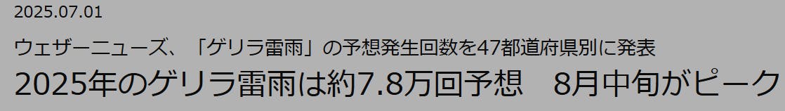 連日、ネットもテレビも騒がせる、ゲリラ豪雨