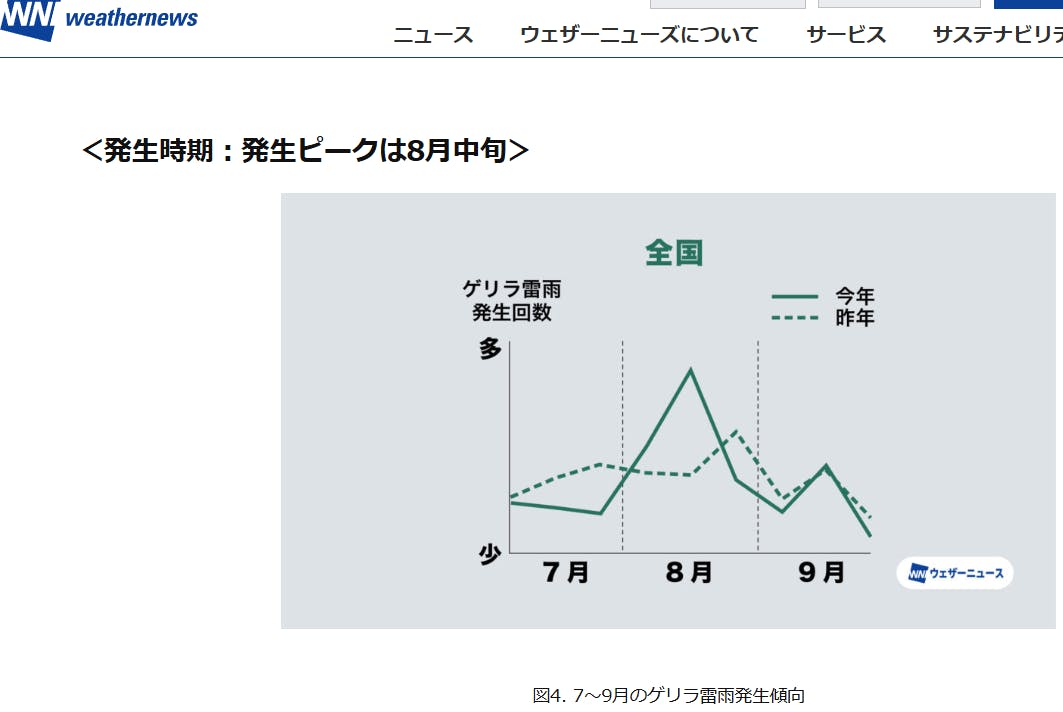 その灼熱地獄にセットになってるのが、ゲリラ豪雨です。