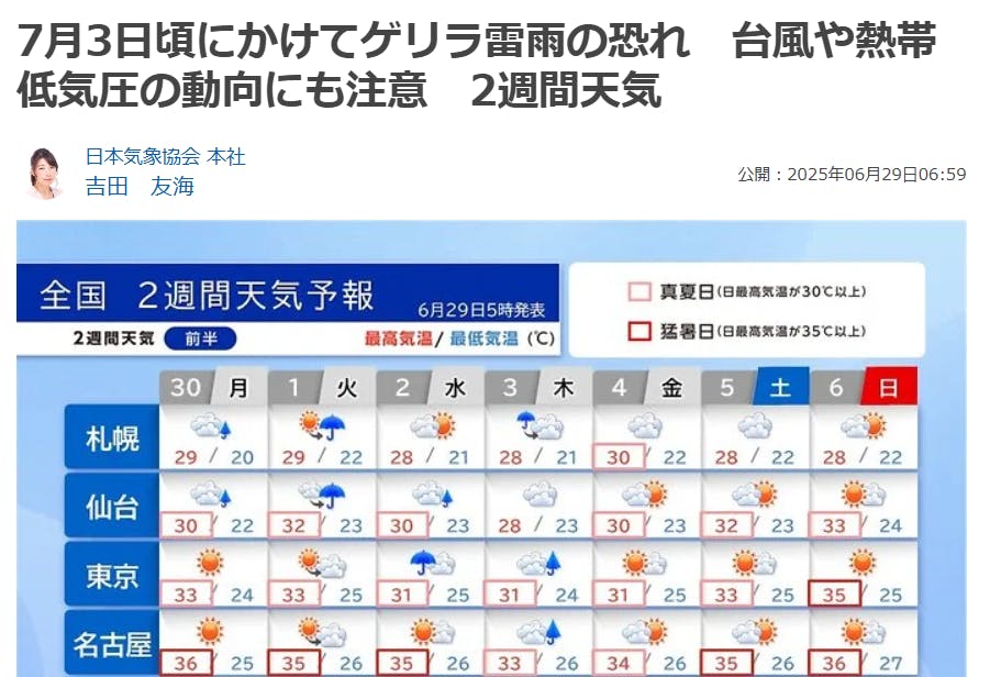 連日テレビでは、ゲリラ豪雨のニュースが流れています。今年は梅雨が早く終わってしまいましたので、恐ろしいほどの灼熱地獄は間違いありません。