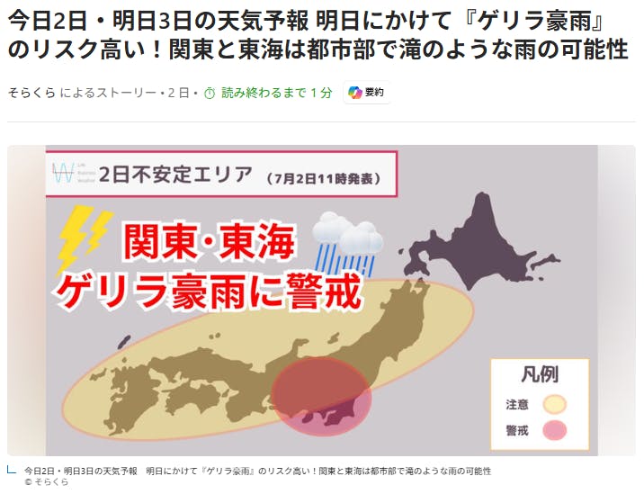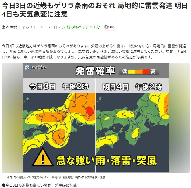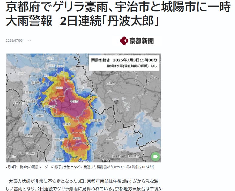 京都付近で激しいゲリラ豪雨があったというニュースが流れました。