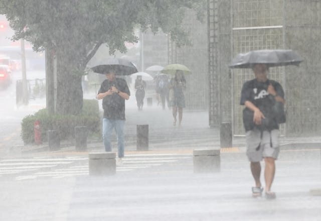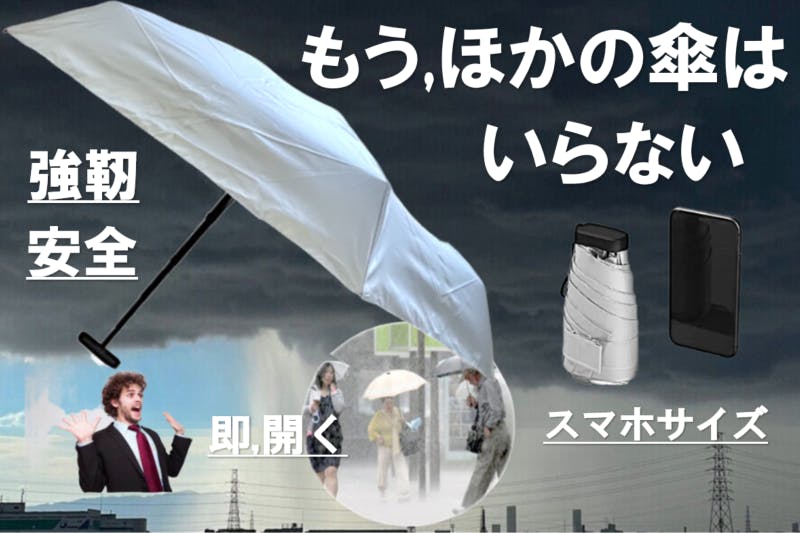 恐ろしい勢いで、ゲリラ豪雨が襲ってきたら、この傘で雨風を凌いでください!
